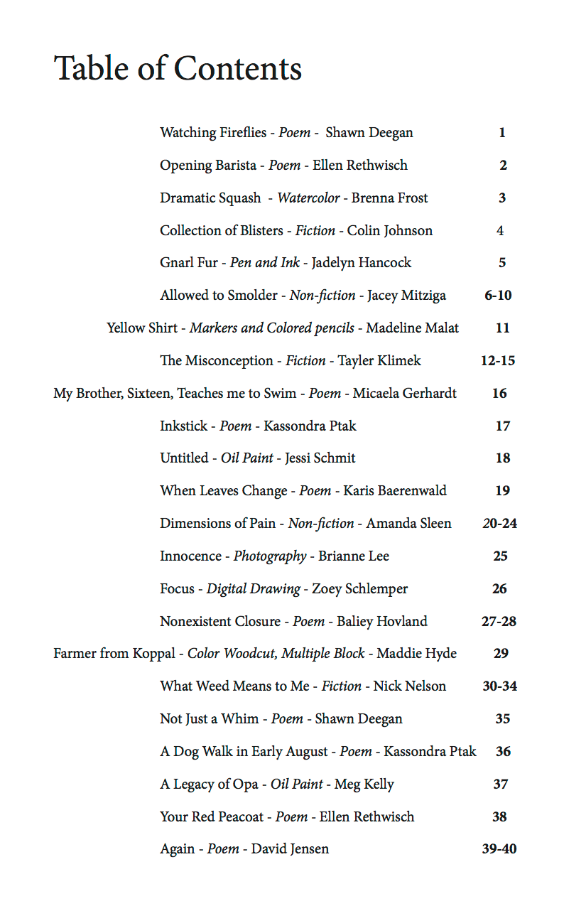 AfterWork is an on campus Art and Literature book that requires a layout plan every year, all work is student done and not specifically mine, I provided the overall format.