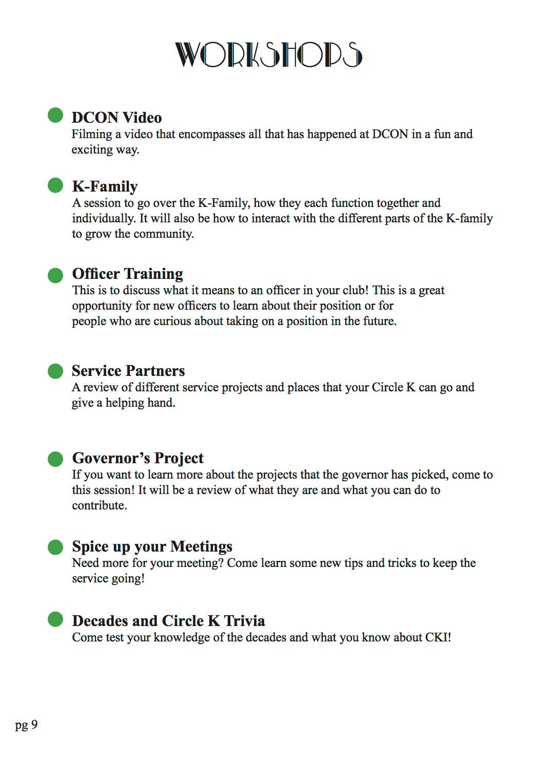 Circle K required different programs and shirts for the different events that are held by the district board throughout the year. These are from the fall and spring events.