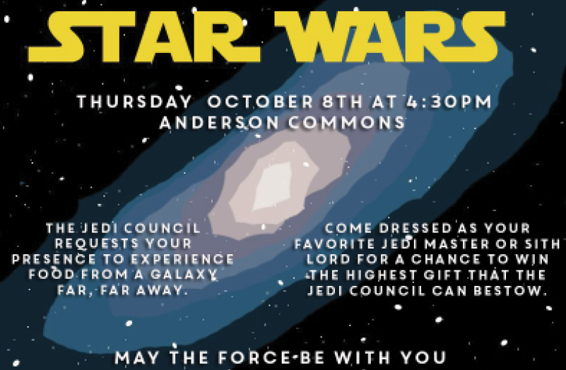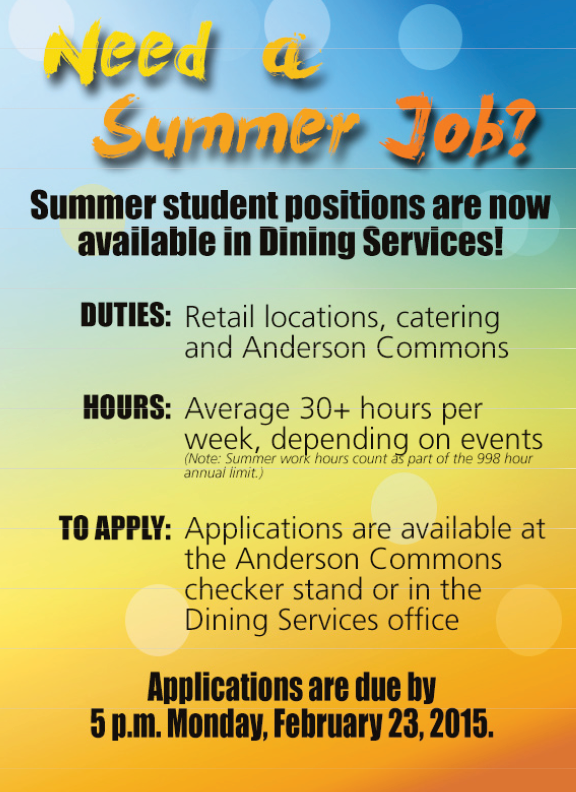 As a marketing asssistant in Dining Services, there is a lot of opportunity for designing. Projects range from designs for theme meals to signs hung around campus.