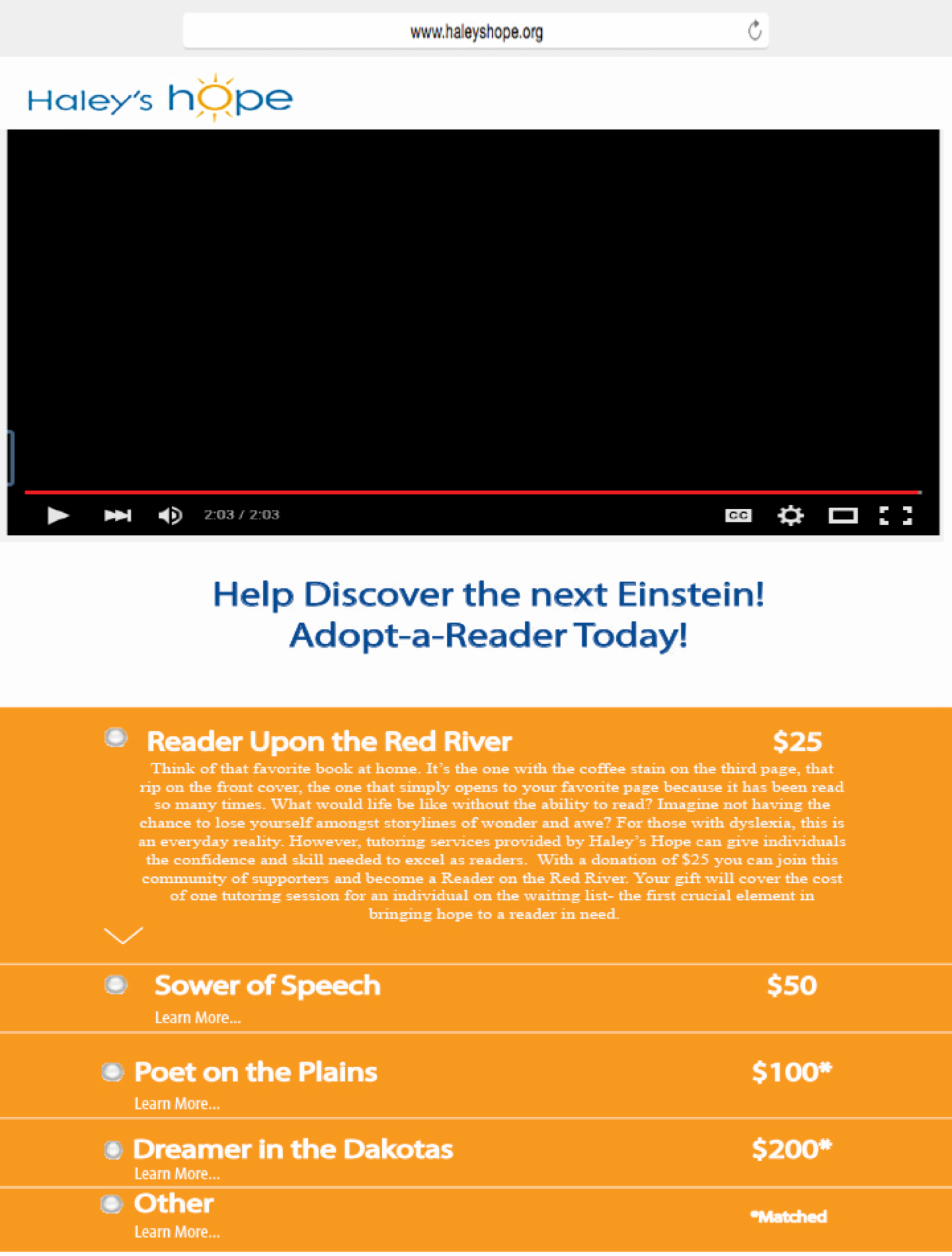 Web design for a hypothetical fundraising opportunity for a non-profit in the city.