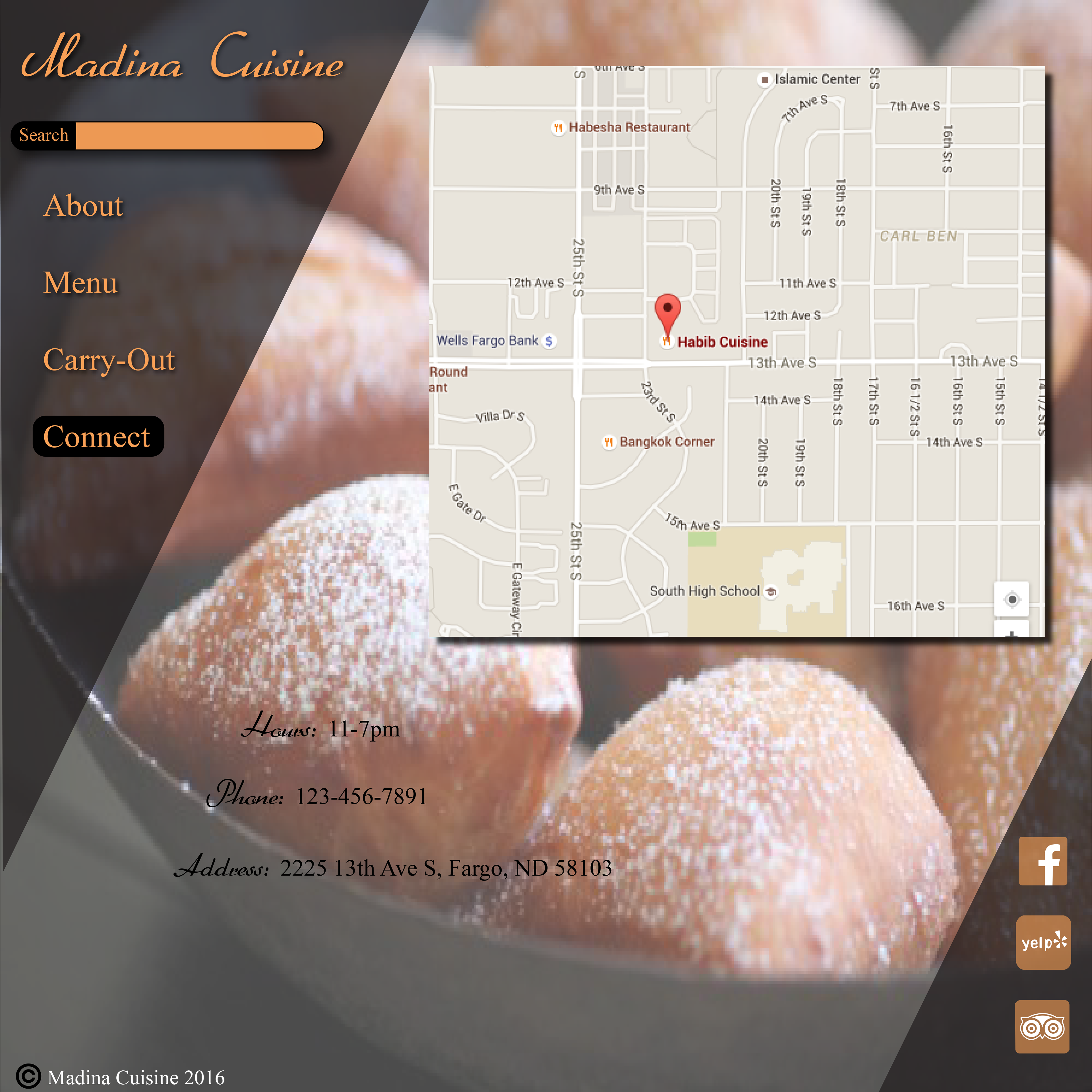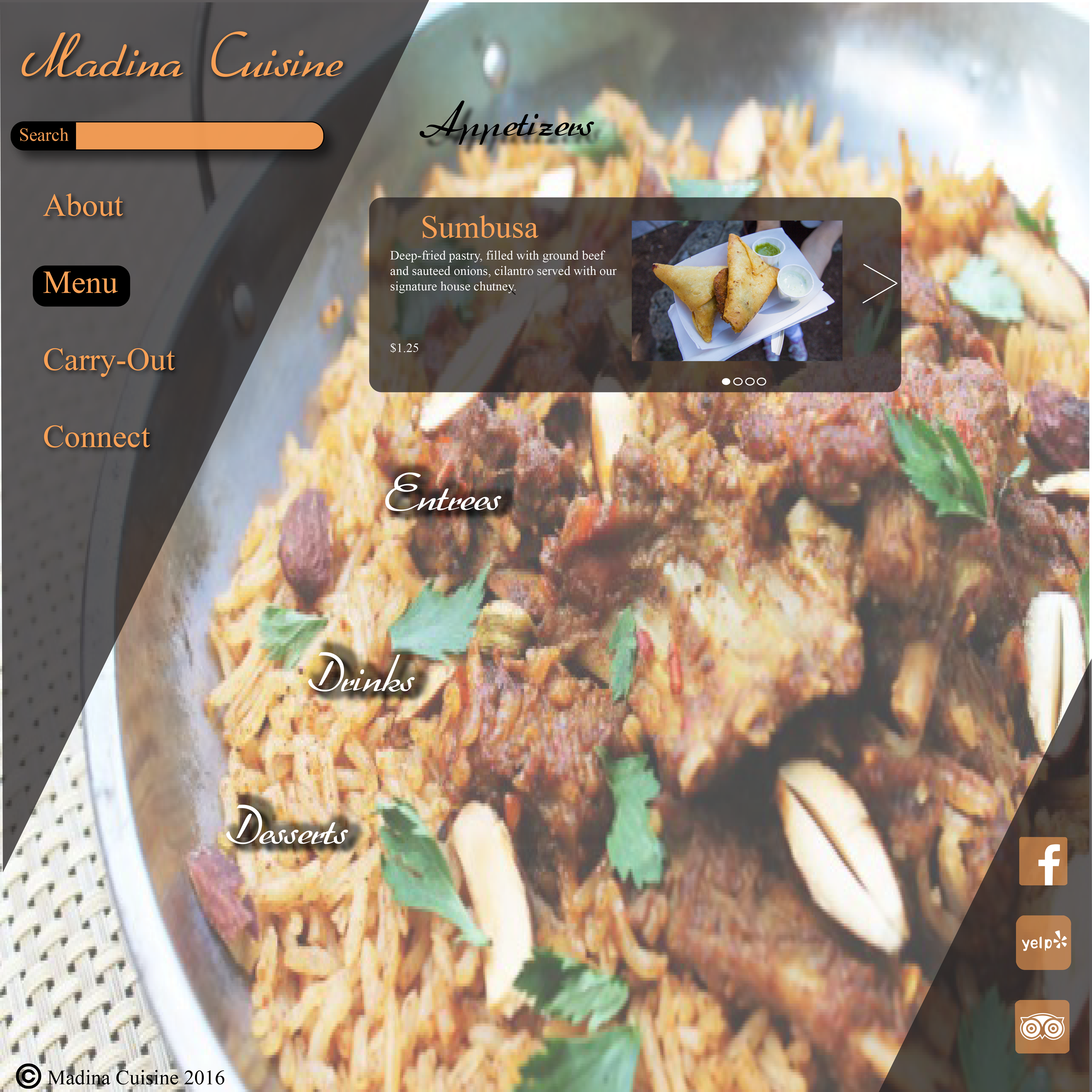Madina Cuisine is a hypothetical rebranding of an actual restaurant.